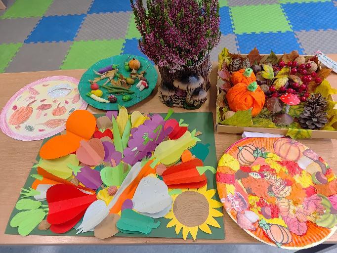 Tegoroczny konkurs plastyczny pod hasłem "Talerz Pani Jesieni" miał za cel ukazanie piękna jesieni i jednocześnie bogactwa jej darów, cennych dla naszego zdrowia. Wspaniałe owoce, warzywa, które są źródłem witamin, minerałów, błonnika są nieocenione w naszej diecie. Prace zgłoszone do konkursu były wykonane w różnych technikach – plastelina, materiały przyrodnicze, płótno, farby. Komisja konkursowa wybrała 3 prace, które wypełniły warunek konkursu – zachęcenia do jedzenia darów jesieni z sadu, pola, ogrodu.