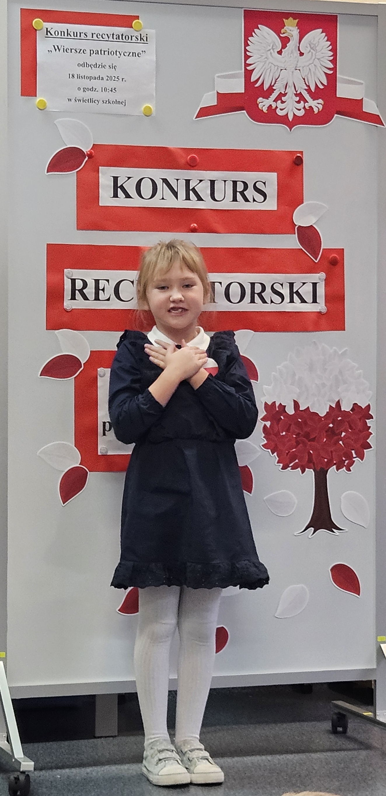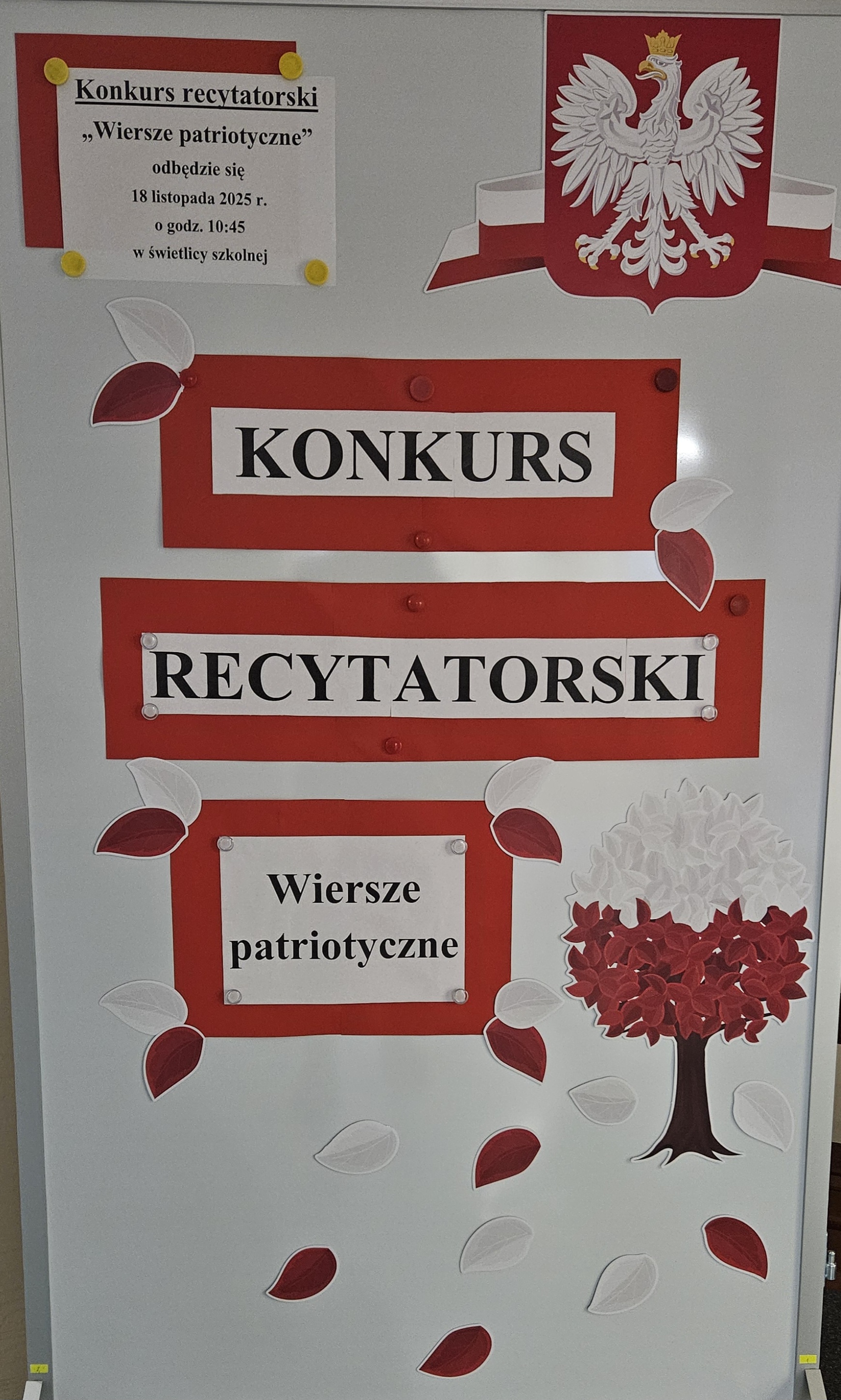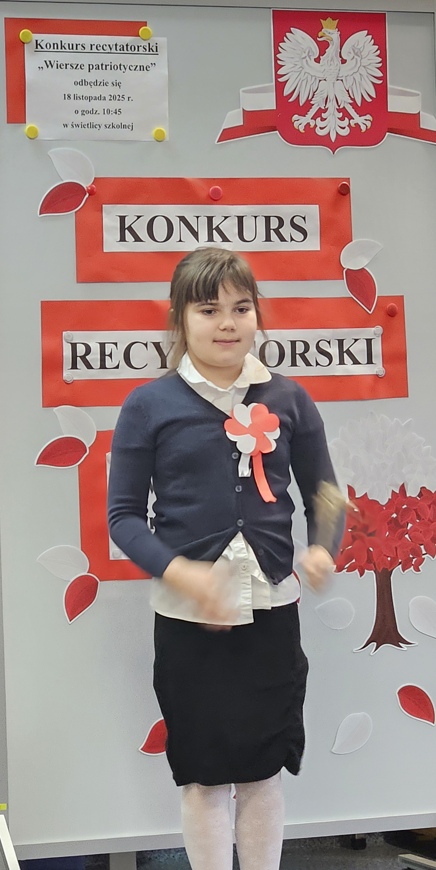 Dnia 18.11.2025 roku odbył się w naszej szkole Konkurs recytatorski poezji patriotycznej. Reprezentanci klas I-III zaprezentowali najpiękniejsze wiersze o Ojczyźnie. Jury oceniając uczestników wzięło pod uwagę dobór repertuaru, stopień opanowania tekstu, interpretację, intonację oraz ogólne wrażenie artystyczne.