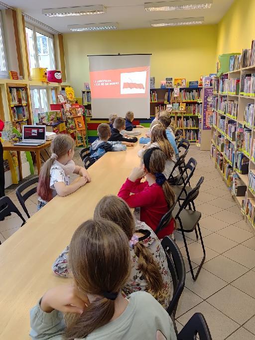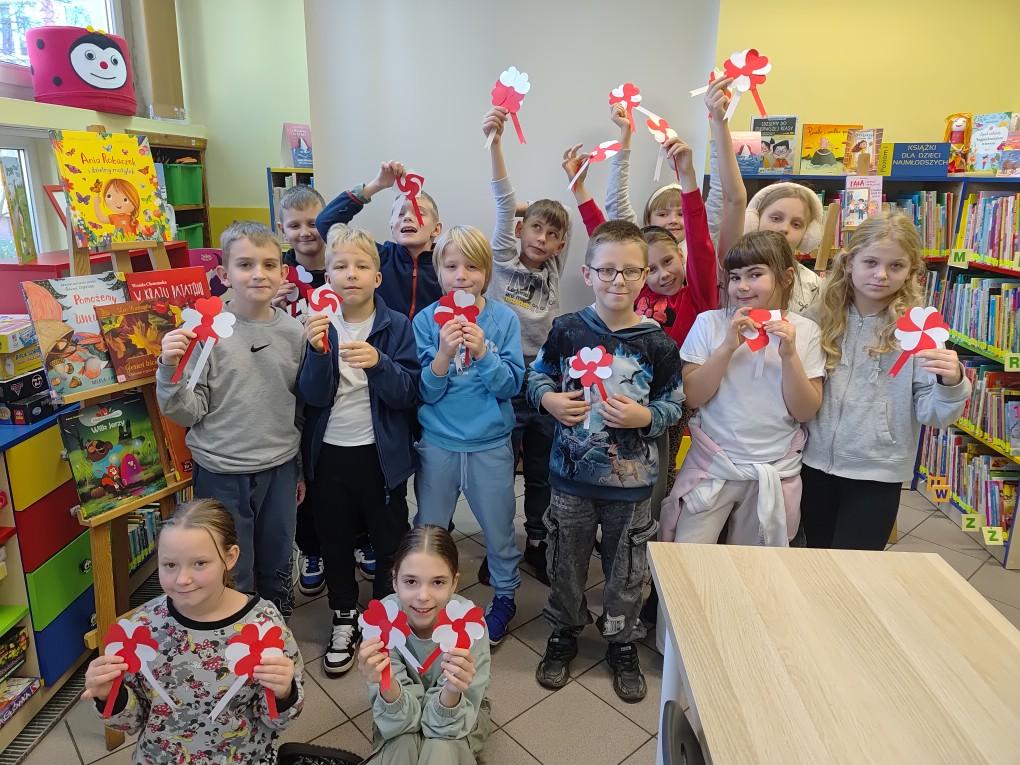 7 listopada 2025 r. uczniowie klasy trzeciej b wraz z wychowawczynią uczestniczyli w warsztatach przeprowadzonych przez panią Agnieszkę w Miejskiej Bibliotece Publicznej na ul. Kadłubka. W związku ze zbliżającym się Świętem Niepodległości uczniowie mieli okazję pogłębić tematykę związaną z historią naszego państwa. Z zaciekawieniem obejrzeli przygotowaną prezentację, z zaangażowaniem układali okolicznościowe puzzle, a na koniec własnoręcznie wykonali piękne kotyliony. Zajęcia wśród księgozbiorów kolejny raz dostarczyło nam mnóstwa wrażeń.